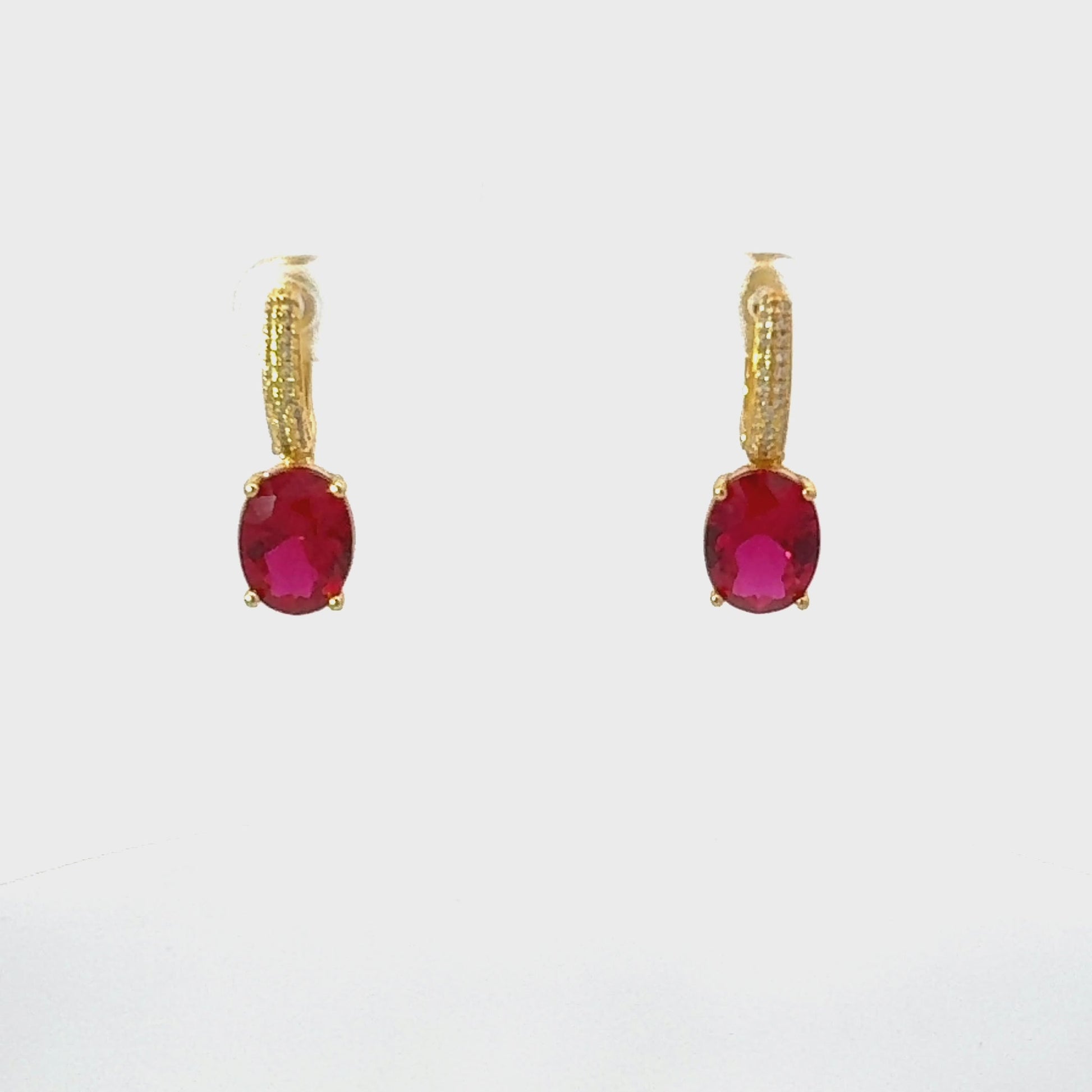 If you want to add a touch of elegance to your outfit, then look no further than our gorgeous Alexandra oval drop earrings! These beautiful, handcrafted earrings are made from 925 sterling silver that has been dipped in 18ct gold. The main feature is a lab-grown oval Ruby gemstone, which is accented with simulated diamonds along the front edge of the latch back closure.